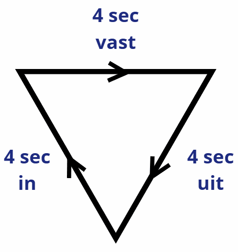 * Het kan helpen om tijdens de oefening een driehoek te visualiseren, waarbij je elke zijde in ongeveer vier seconden ‘afloopt’ met je ademhaling.